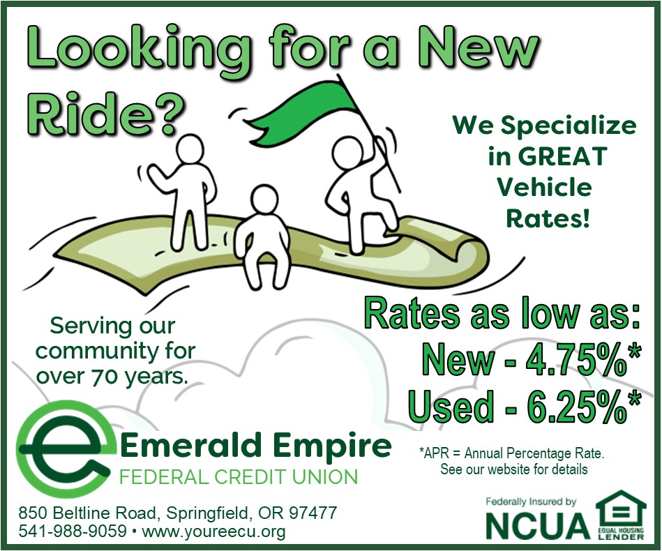 People on a flying dollar bill. Text: Looking for a new Ride. We specialize in great vehicle rates. rates as low as new - 4.75% used - 6.25% see website for addition information , rates, and disclaimers. Federally insured by NCUAPurchasing a new vehicle can be overwhelming! Let the Loan Officers at EEFCU help you soar over the challenges. Get Pre-Approved and ask about our Great Rates and Promotions. Additional information and rates are viewable here.